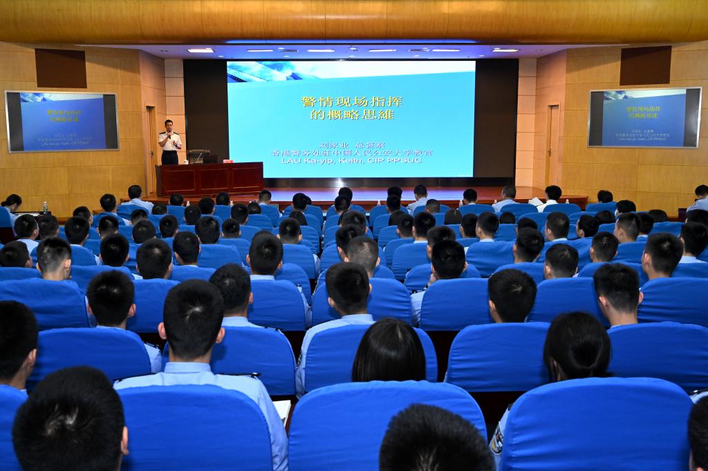 在校期间,刘家业总督察为学院师生和实战教官开设“警情现场指挥的概略思维”和“执法现场舆情应对”专题讲座。刘家业总督察根据真实案例,创设现场指挥的不同场景,分析提炼了处理不同警情时的基本原则、处置流程和行动训令,系统分析了回应公众关注事件的重点难点和策略技巧。讲座现场气氛热烈、互动频频,师生纷纷表示,刘家业总督察的讲授为他们了解香港警察实务工作提供了难得机会,为他们在实战实训中开展警情现场指挥和舆情应对提供了有益参考。