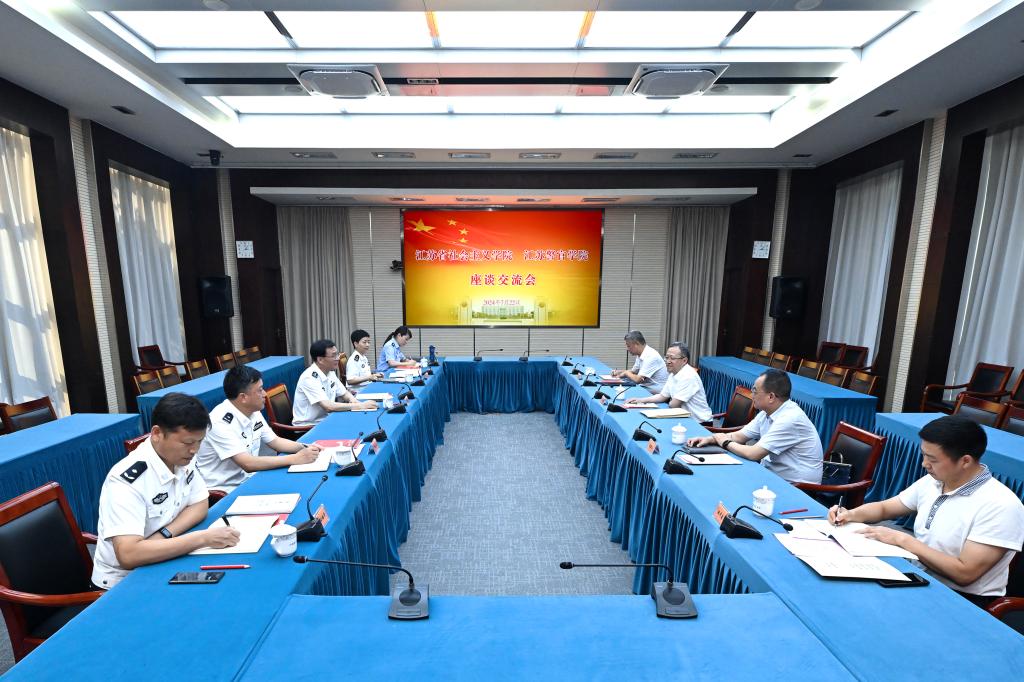 7月22日,省委统战部副部长、省社会主义学院党组书记刘步健带队来我院考察调研,省公安厅党委委员、学院党委书记夏存喜和学院党委副书记陈卫,学院党委委员、教务处处长缪文升参加调研活动,双方围绕党建工作、财务管理、教师队伍建设等工作进行座谈交流。