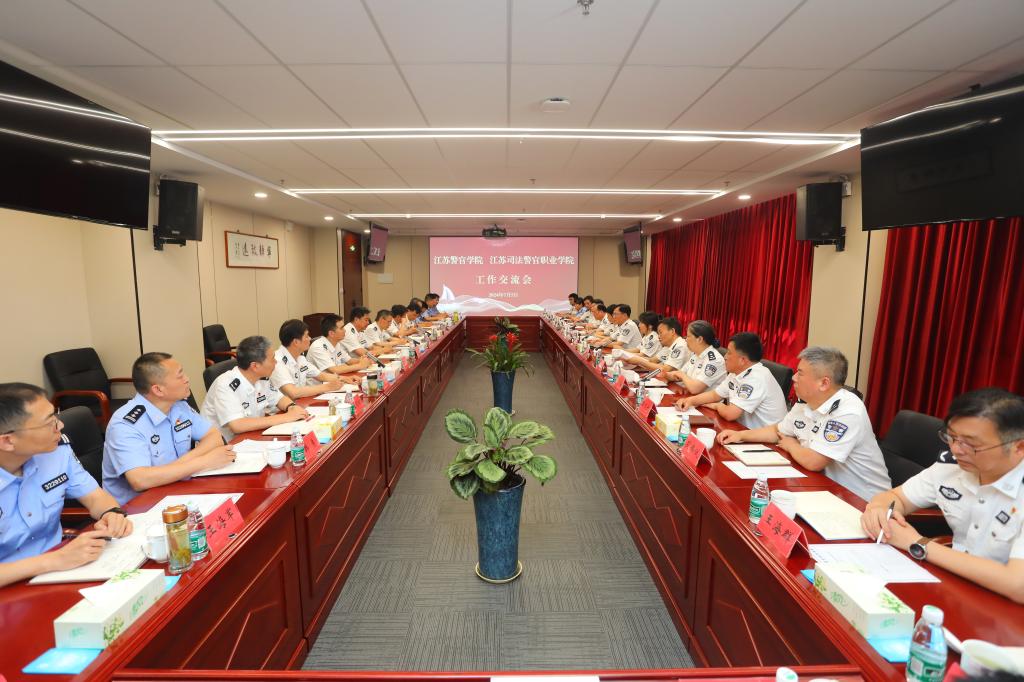 近日,省公安厅党委委员、学院党委书记夏存喜,学院党委副书记、院长黄进率队赴江苏司法警官职业学院考察交流。省监狱管理局党委副书记、政委,司法警院党委书记宋长健,司法警院党委副书记、院长王智军出席活动。