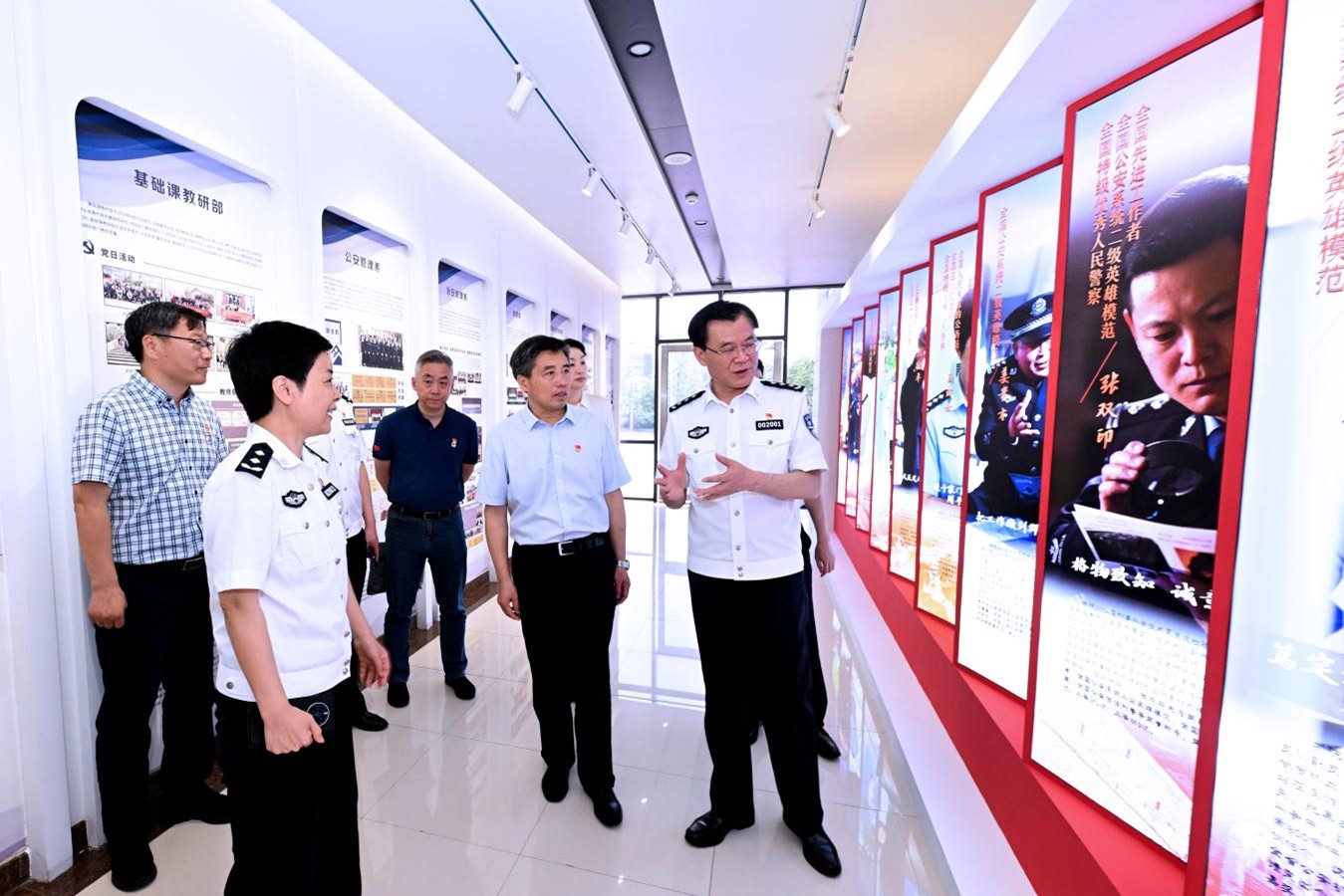 交流期间,刘红明一行观看了宣传片《回响》,观摩了党纪学习教育微课程,并参观了近代警察史博物馆、功模校友事迹展、艺术思政主题书画摄影展等。