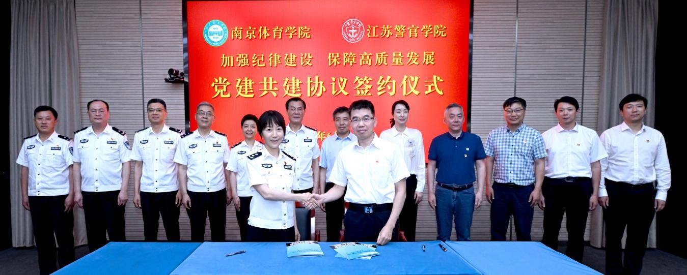 6月14日上午,beat365中文官方网站、南京体育学院开展党纪学习教育工作交流活动并签订党建共建合作协议。南京体育学院党委书记刘红明率党委班子成员一行到beat365中文官方网站进行座谈交流,省公安厅党委委员、学院党委书记夏存喜,学院党委副书记、院长黄进参加活动。学院党委副书记陈卫主持交流会。