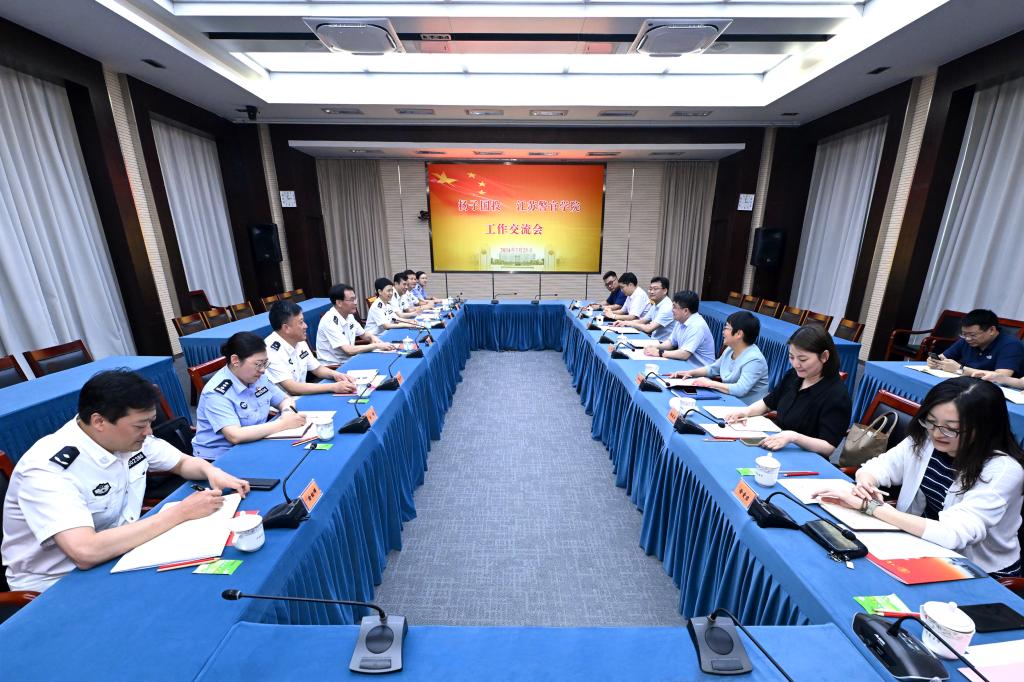 7月23日,扬子国投集团党委书记、董事长王伟一行来我院考察调研,省公安厅党委委员、学院党委书记夏存喜和学院党委副书记陈卫,学院党委委员、教务处处长缪文升参加调研活动。