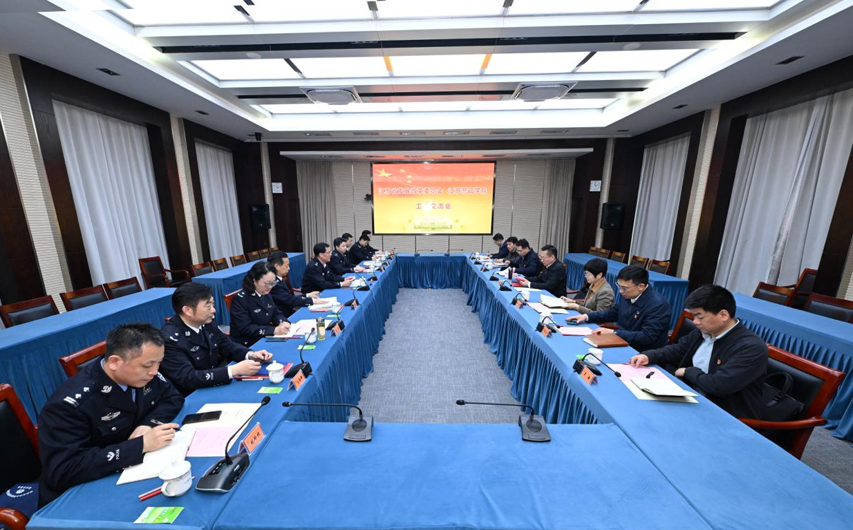 夏存喜对杭海一行来学院考察调研表示欢迎,对省发改委一直以来给予的支持和帮助表示感谢,介绍学院整体发展、学科建设及人才培养、服务平安江苏建设等方面的情况,双方进行了深入交流。