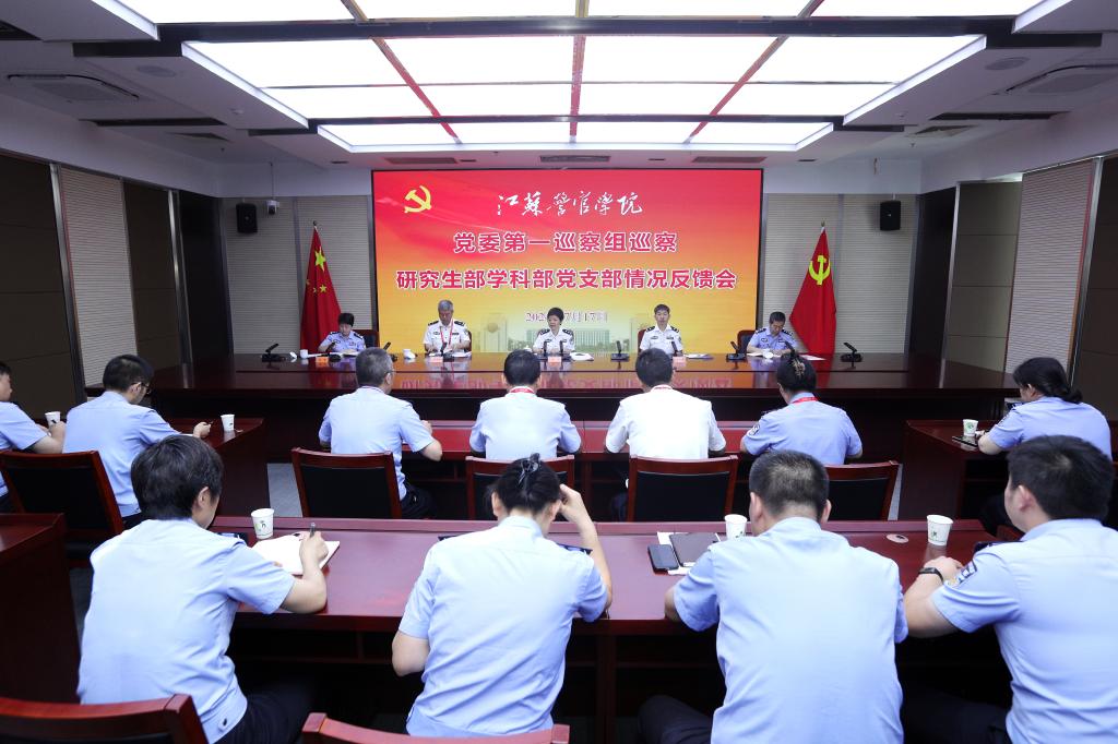 7 月 17 日上午,学院召开第四届党委第一轮巡察情况反馈会。学院党委副书记、巡察工作领导小组副组长陈卫,学院党委委员、纪委书记、省监委派驻监察专员、巡察工作领导小组副组长殷其新出席会议并讲话。党委第一巡察组组长孙伟斌、第二巡察组组长王海群分别向刑事科学技术系党总支、基础课教研部党总支、研究生部学科部党支部、博物馆党支部等 4 个党组织反馈巡察意见,四个被巡察党组织书记分别就做好巡察整改工作作了表态发言。