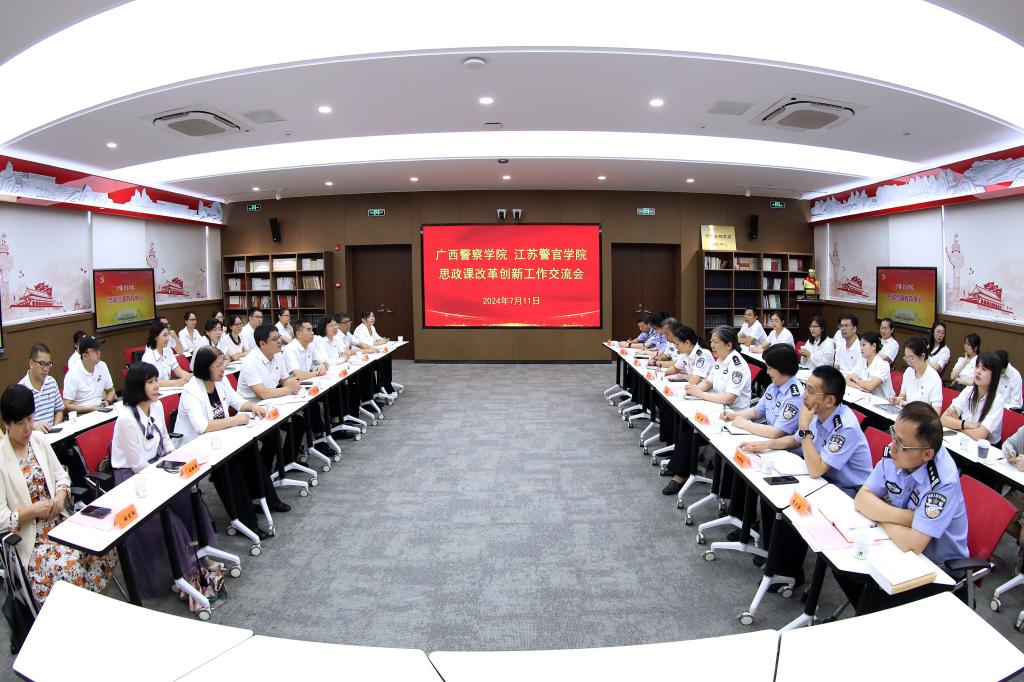 7月11日,广西警察学院马克思主义学院院长蒋巍一行来我院调研交流。马克思主义学院干部教师参加工作交流,学院党委委员、副院长刘蔚文出席交流会。
