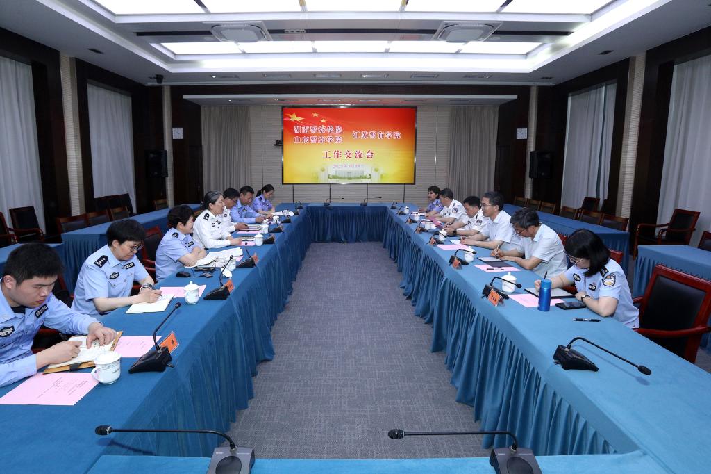 5月15日,湖南警察学院党委委员、副院长刘绪崇,山东警察学院党委委员、副院长吕绍忠一行来我院调研交流,学院党委委员、副院长刘蔚文出席交流会。