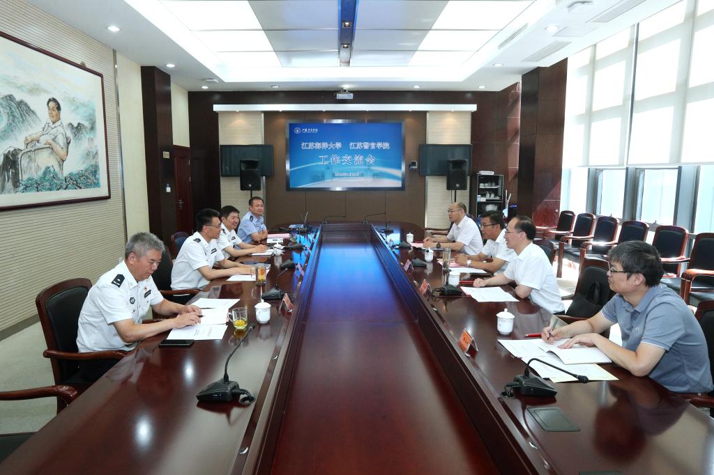 7月25日,江苏海洋大学党委常委、副校长郑利军和党委常委、纪委书记、省监委派驻监察专员徐双俊一行4人来beat365调研。学院党委委员、纪委书记、省监委派驻监察专员殷其新出席座谈交流。