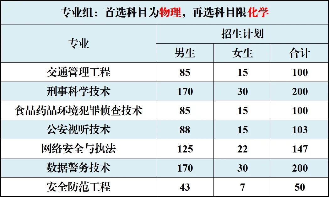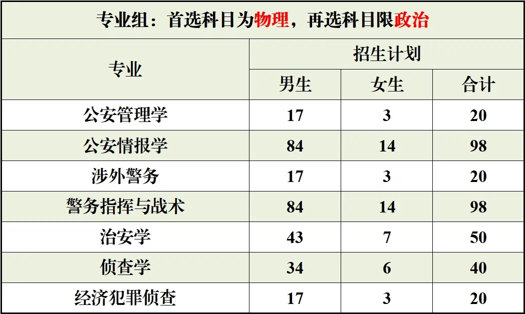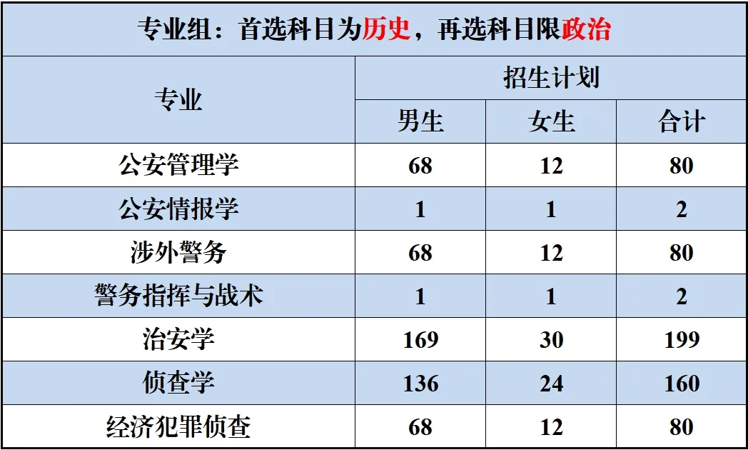 备注:4名保送生计划用于招收公安英烈和一级至四级因公伤残民警子女保送生。