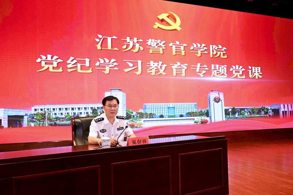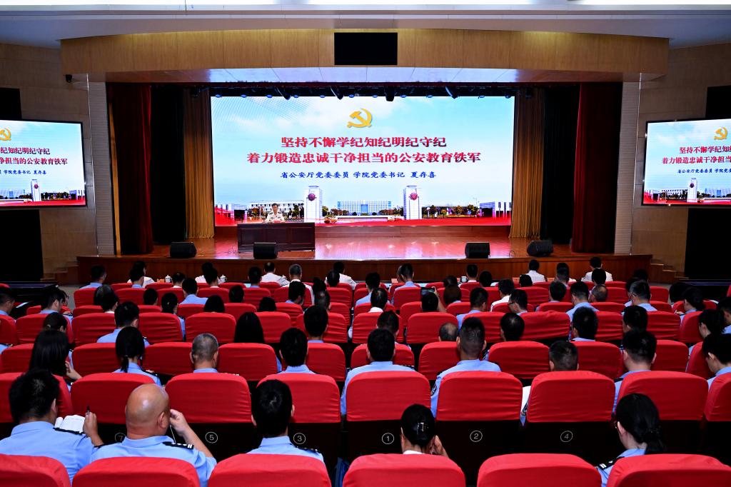 根据学院党纪学习教育安排,6月21日下午,省公安厅党委委员、学院党委书记夏存喜以“坚持不懈学纪知纪明纪守纪 着力锻造忠诚干净担当的公安教育铁军”为题给全院干部师生讲专题党课,深入学习贯彻习近平总书记关于全面加强党的纪律建设的重要论述,教育引导全体干部师生在党纪学习中不断增强纪律意识、提高党性修养,自觉用党规党纪校正思想和行动,始终做到忠诚干净担当。