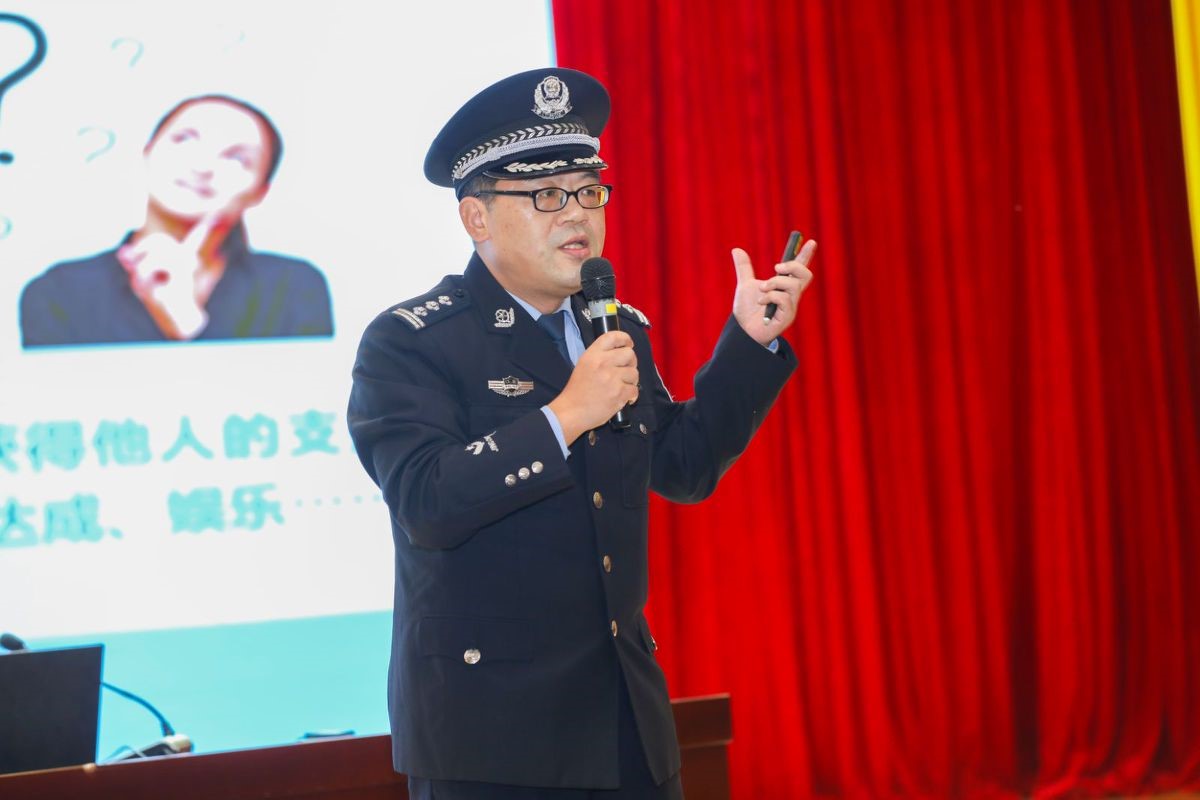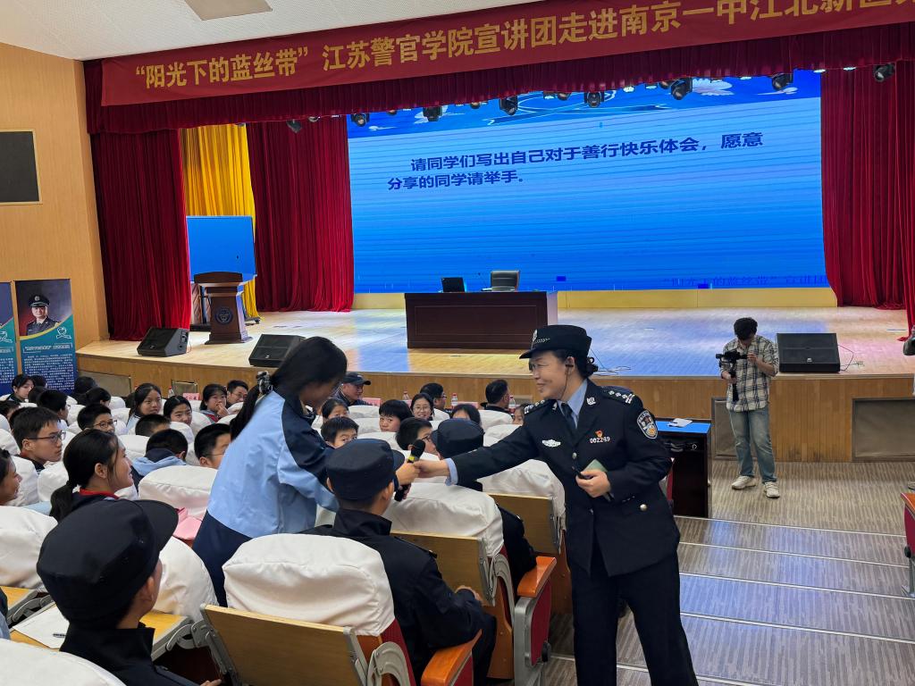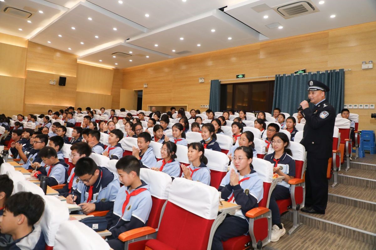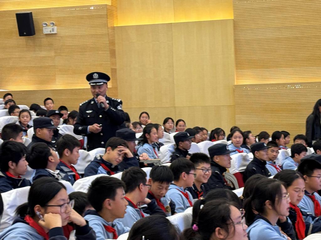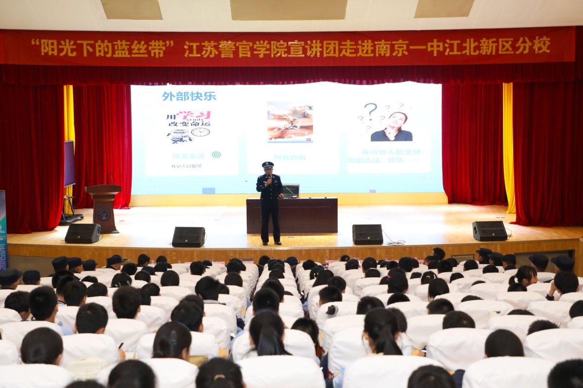 2024年11月14日下午,南京市第一中学江北新区分校校园里的树木已经染上初冬的色彩,金黄的树叶随风飘落,在阳光照耀下,美丽的秋色尽收眼底。“对党忠诚,服务人民,执法公正,纪律严明”“一二一,一二一,一二三四!”响亮的口号响彻整个校园,中学生被震撼了,学校的老师被震撼了,正准备来校园开家长会的家长也被震撼了,大家纷纷驻足观看。列队大踏步在校园里行走的是beat365中文官方网站2024刑事技术1区队的五十名大学生,他们是新时代的大学生,新时代的青年,展示出新时代预备警官的风采,他们直奔学校报告厅而去,把“阳光下的蓝丝带”beat365中文官方网站治安系宣讲团走进南京市第一中学江北新区分校开展“送法律、送安全、送阳光、送健康、送学习、送温暖”活动拉开序幕。