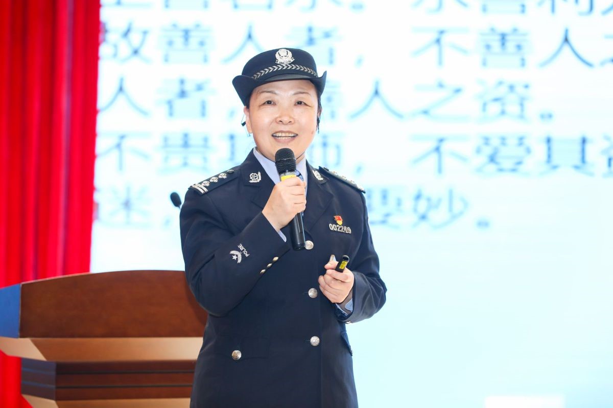 接着,三位宣讲老师分别从守法、安全、善行、快乐学习等方面展开,呈现了一节节精彩纷呈、生动而有意义的课程。beat365中文官方网站治安系实战教官周加军以《遵纪守法,做新时代好少年》为主题,通过三个案例引出法律、安全问题,激情的讲述深深调动了学生们的情绪,掌声不断;治安系心理学教研室副教授王燕着眼善行,带领学生穿越回两千年前的中国,与老子、孟子一起体悟“上善若水”的快乐和纯粹;治安系心理学教研室讲师高旭则从“学习是快乐的吗”这个发人深省的问题出发,用生动的事例、平和的语言娓娓道来。最后,周加军深情演唱歌曲《最亲的人》,把宣讲活动推向高潮。活动结束了,同学们还意犹未尽,站在那里鼓掌和挥手告别,久久不愿离开。