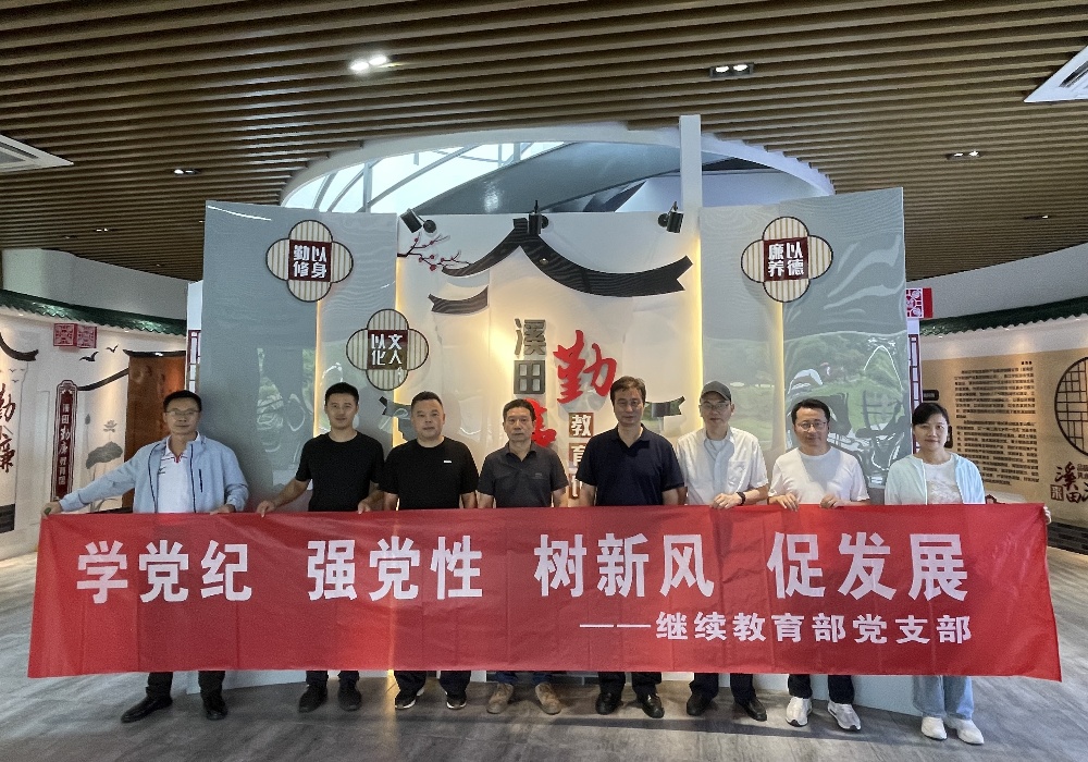 为推动党纪学习教育走深走实,继续教育部党支部开展以“学党纪、强党性、树新风、促发展”为主题的党日活动。组织党员干部参观南京市江宁区溪田勤廉教育基地,进行实境教育。