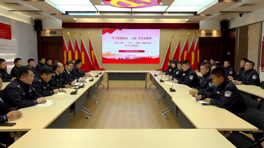 2024年11月15日,现代教育技术中心党支部组织开展了“学习贯彻党的二十届三中全会精神,信息技术助力‘三全育人’上新阶”主题党日活动暨社团见面会。技术服务社成员、全员育人结对区队(24数据安防)学生骨干、现教中心全体党员参加了活动。