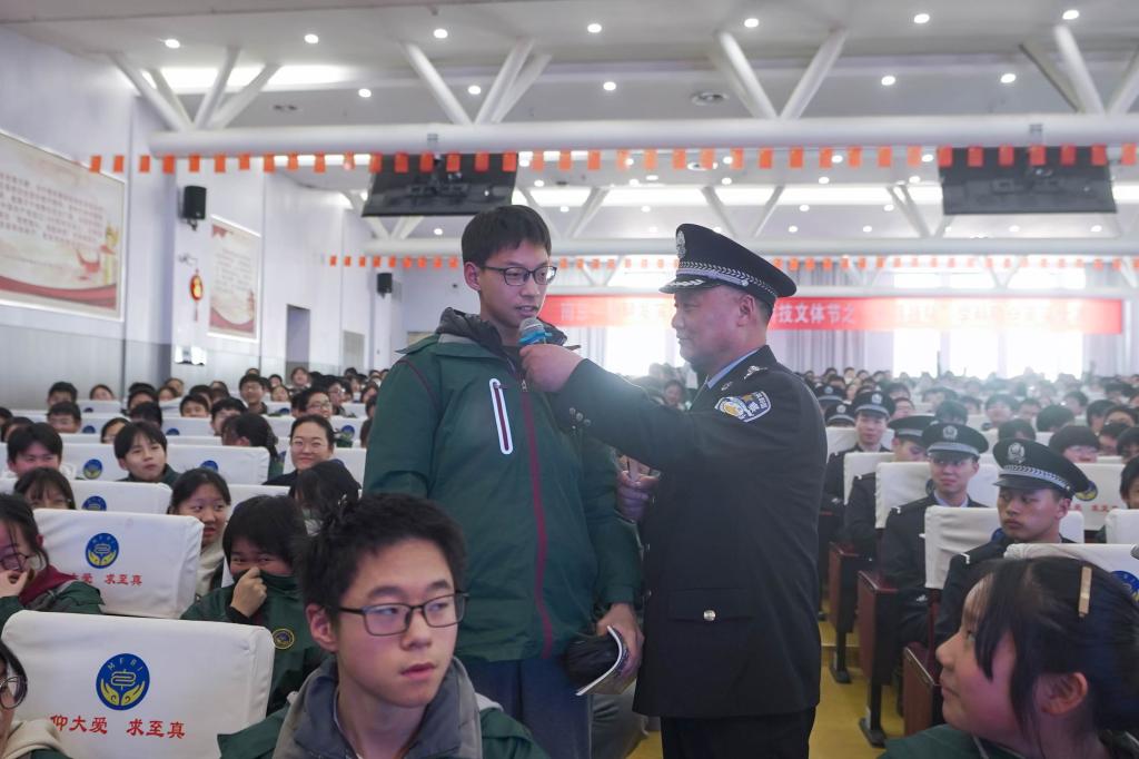 宣讲最后,周加军警官为大家深情演唱了《最亲的人》,用歌声传递祝福,祝愿同学们身体健康、心理阳光、学习进步,并走到台下与师生亲密互动,掌声经久不息。