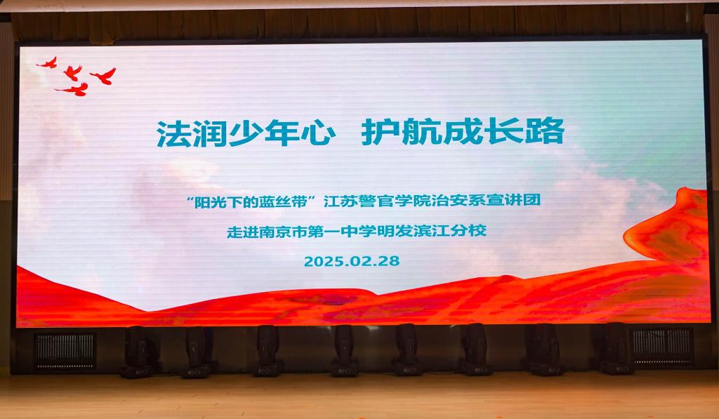 2025年2月28日下午,“阳光下的蓝丝带”beat365中文官方网站宣讲团以及治安管理系学生一大队的45名学警走进南京市第一中学明发滨江分校,开展“送法律、送安全、送阳光、送健康、送学习、送温暖”活动。活动以“法润少年心,护航成长路”为主题,以专业知识分享帮助中学生增强安全防范意识,提高学习能力,守护健康成长,为培养积极人格、知法懂法、健康幸福的新时代好少年奠定坚实基础,同时坚定学警从警初心,实现自我价值,厚植公安情怀,为营造安全和谐的社会环境作出积极贡献。