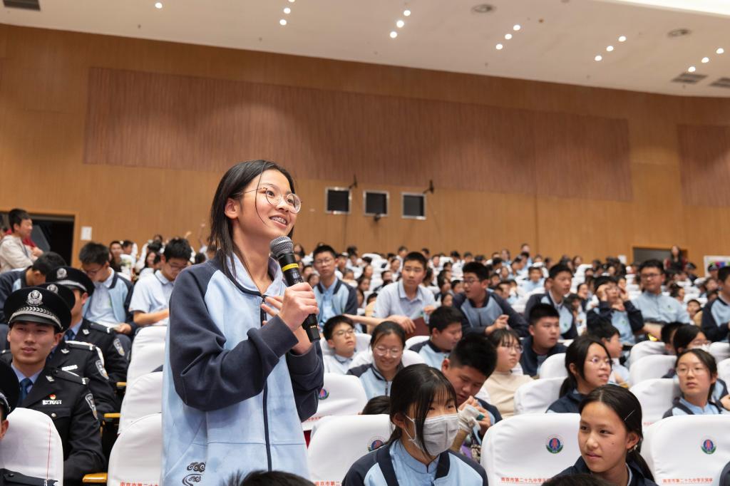 在互动答疑环节,同学们积极踊跃,就自己关心的法律知识、安全防范、学习生活等问题提问,宣讲团成员耐心解答,与大家深入交流,分享大学生活,传递新时代警校生的正能量,现场气氛十分活跃。