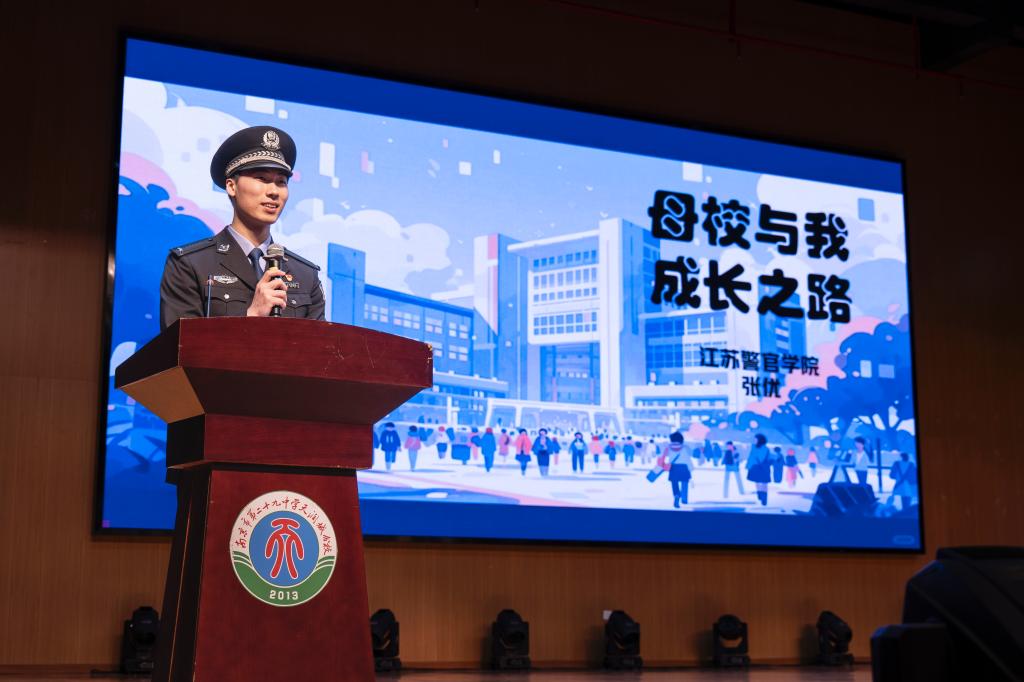 周骥同学深情地朗诵了《致繁星——一门四警,两代忠烈》,用铿锵的声音、深厚的情感勾勒出警察世家的忠诚与担当,令同学们沉浸其中,深感敬佩。
