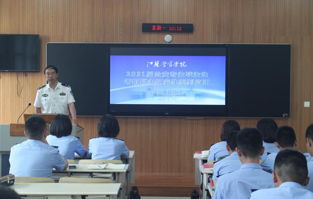 5月24日,支部在2020级治安3区队组织了系列宣讲启动仪式,支部人员详细介绍了我院联办研究生教育和申硕立项建设情况,希望本科生们珍惜时间,认真学习,不断提升自我能力水平。