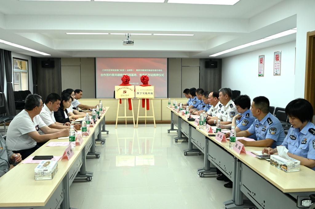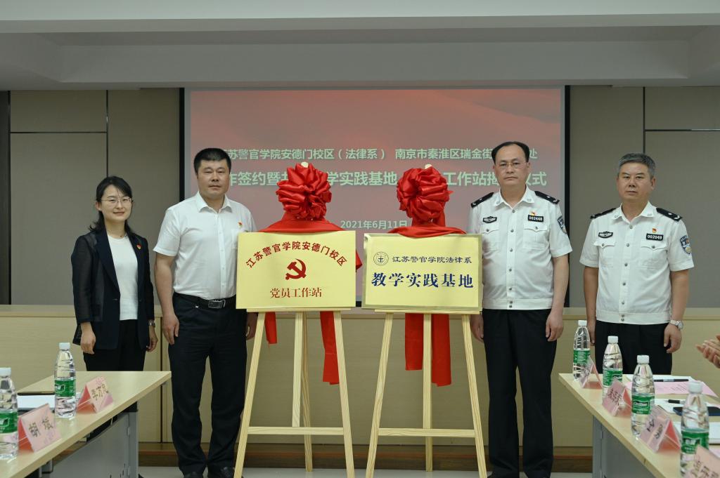 6月11日,beat365中文官方网站安德门校区与南京市秦淮区瑞金路街道举行共建党员工作站和教学实践基地合作签约暨揭牌仪式,深化校地合作交流,加强党建共建,推动党建与业务工作深度融合,共建共享校地优势资源,服务法学实践教学改革和司法实务工作。