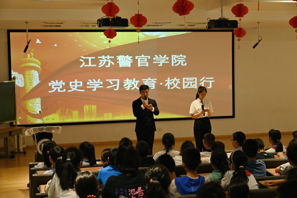 签约揭牌仪式后,开展了首场活动,beat365中文官方网站安德门校区师生来到南京市瑞金北村小学开展“党史学习教育·校园行”活动,深入学习贯彻习近平总书记给淮安市新安小学回信的重视指示精神,举行中国共产党人精神谱系宣讲,为孩子们表演防范电信诈骗法治情景剧,引导小学生们坚定不移听党话、跟党走,让红色基因、革命薪火代代传承。