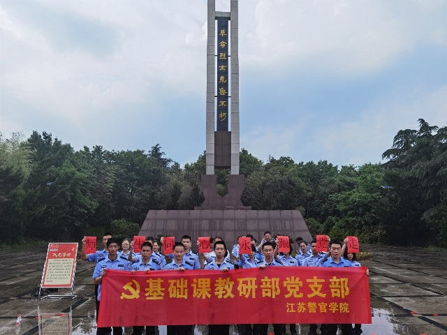 近日,基础课教研部全体教师前往浦口区求雨山烈士陵园,开展党史学习教育现场教学暨党日活动,全员育人联系区队15名学生代表参加了活动。
