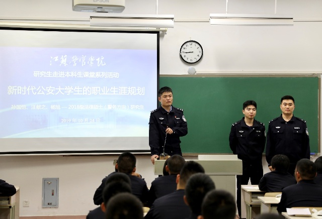 为进一步落实学院全员育人工作要求,10月24日晚,研究生教育部、学科建设工作部结合部门工作实际,组织开展“研究生走进本科生课堂”系列活动,部门全体人员和2018级法律硕士研究生班的9名学生分组走进2019级公管一、二和情报区队,作“新时代公安大学生的职业生涯规划”“公安工作与警院学习规划”“做一名优秀公安民警”等主题交流。