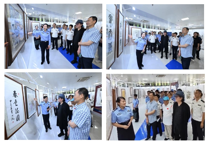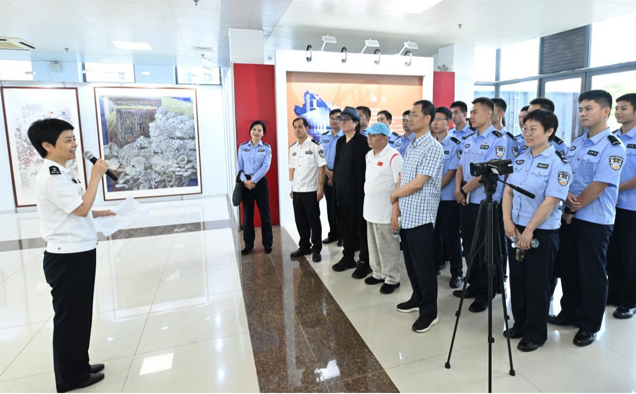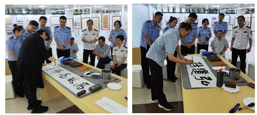 两位老师参观了英模校友展、校史馆等,对我院宣传思想文化工作给予充分褒奖,有感于公安文化鲜明特色,现场即兴示范创作了书法作品,并将墨宝赠与学院。对学院举办主题书画摄影展打造“艺术思政实践课堂”给予高度评价,认为师生作品有内涵、有特色、有创意,不乏佳作,很好展示了警察精神和警营风貌,是美育育警不可或缺的阵地和方式。