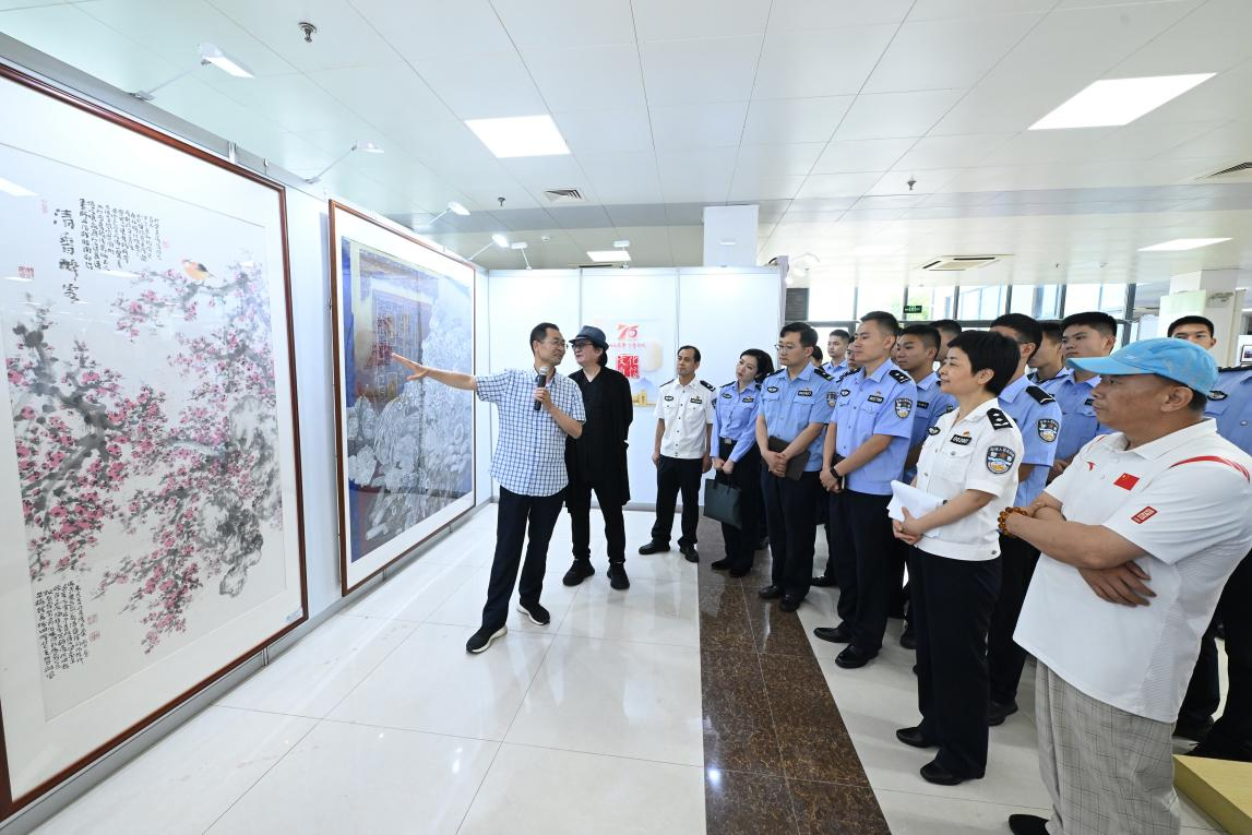 此次讲堂开在艺术思政实践课堂书画摄影展厅内,赵治平、韩显红两位老师采用“课展融合”的方式进行教学,将教学空间和展示空间统一协调起来,将中华优秀文化与公安艺术相融合,以美育人与育警铸剑相融合,以深厚的艺术造诣和专业的审美视角对我院师生创作的书画摄影作品进行现场点评,从艺术创作构想、美学表达、书画技法、文以化人等方面进行专业指导,通过兴趣盎然的讲、听、看、思、悟,带给大家一场触及心灵深处的艺术思政课。