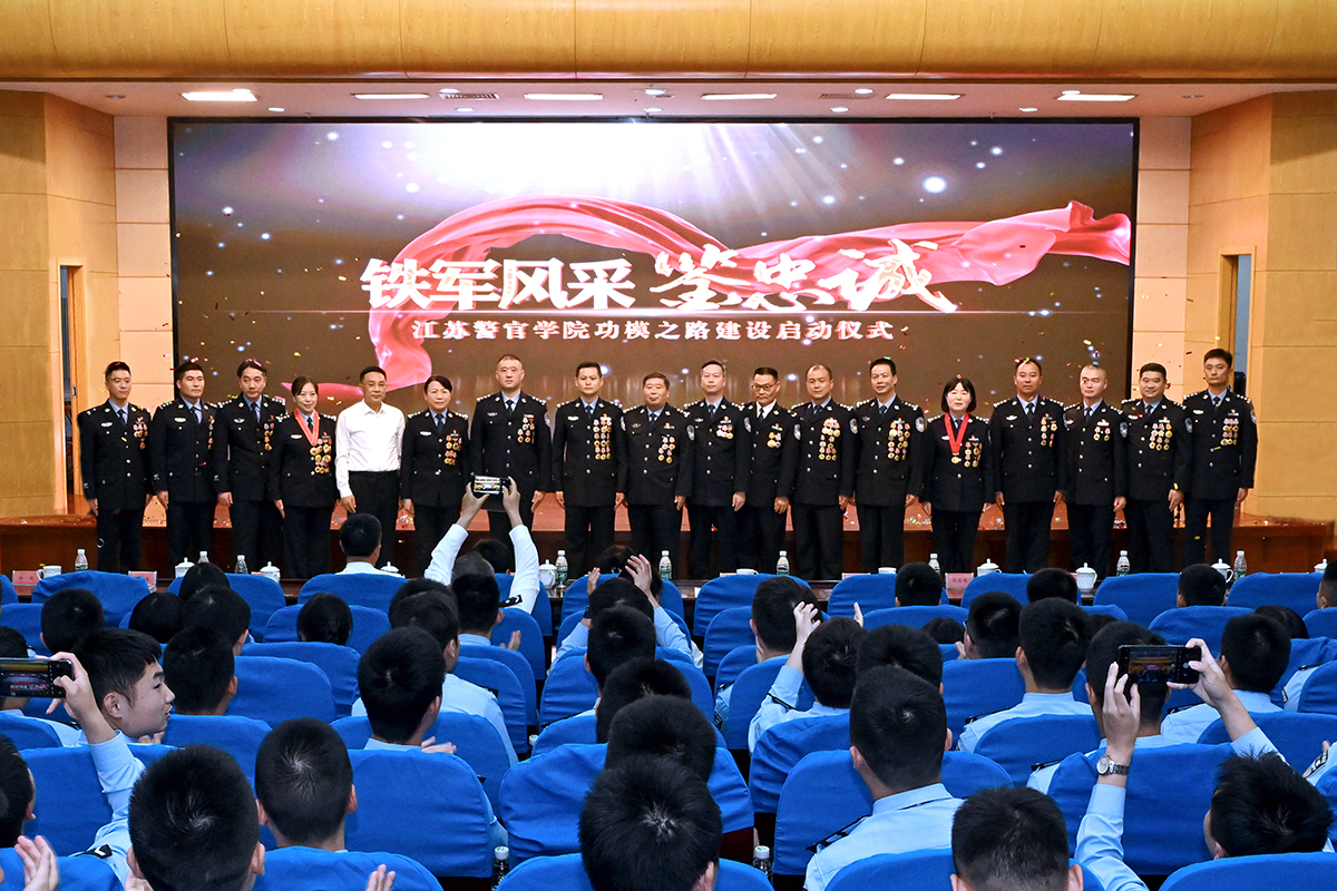 5名功模校友与其在校学习期间的师长代表参加访谈,一同追忆求学时光、回顾成长历程、共叙忠诚故事。全国人民满意的公务员、全国公安系统二级英雄模范、全国三八红旗手、全国特级优秀人民警察、镇江刑事科学技术民警金怡,回忆在校时参加大学生艺术团以及因《手印学》课程爱上指纹工作的经历,她以“用匠人的心,用犀利的眼,让犯罪无处遁形,让正义得以伸张”为座右铭,勉励同学们坚持不懈、久久为功,用奉献演绎不凡、用奋斗兑现诺言;全国先进工作者、全国公安系统二级英雄模范、全国特级优秀人民警察、连云港刑警科学技术民警张双印,分享练就侦破命案“火眼金睛”的独家“秘籍”:全身心投入、痴迷般热爱和强烈责任感。他勉励学警坚定信念、不忘初心,练就过硬警务技术,保障社会稳定和人民安宁;全国公安系统二级英雄模范、全国优秀人民警察、常州刑警庄献锋,分享在校期间因学校老师严格教育管理发生思想上根本转变、进一步坚定从警决心的经历,他勉励学警磨炼“坚守”的品质,坚守对警察职业的热爱和守护平安的理想;全国公安系统二级英雄模范、宿迁交警张亮亮,讲述徒手破窗救人的英雄事迹,分享工作以来纠违10万起没有一起被投诉的宝贵经验,他勉励学警在执法工作中要时刻注意理解、尊重和规范,做到心中有群众、脚下有力量,肩上有责任、心中有担当;全国公安系统二级英雄模范、南京民警刘小川,讲述抓捕驾车毒贩的惊险过程和三次高考两次入警的经历,勉励同学们要坚韧不拔、练就过硬本领,在危难时刻临危不惧、冷静果断,矢志不渝做党和人民的忠诚卫士。访谈结束后,功模校友共同启动 “功模之路”建设。