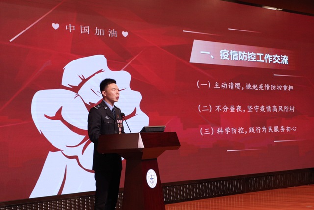 疫情防控期间,徐州市公安局三堡公安检查站民警司元羽,累倒在工作一线;沛县公安局五段派出所辅警章良志,倒在疫情防控一线。徐州市铜山区万达警务工作服务站30岁辅警时席席,连续防疫加班数日后倒下,同为辅警的父亲戴上独子小席的警帽,继续战斗在一线。司元羽的战友现场讲述了徐州公安催人泪下的战“疫”故事,希望警院学子牢记“忠诚与守纪”,修炼“本领与心态”,珍惜“健康和情谊”,插上“梦想和坚持”的翅膀。