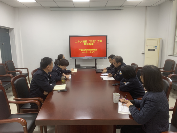 党的二十大召开以来,马克思主义学院多次召开党的二十大精神专题理论学习会,充分借助“周末理论大讲堂”“求真大讲堂”专家辅导讲座等平台,组织全体干部教师认真学习领会党的二十大精神。学习宣传贯彻党的二十大精神是当前和今后一个时期的首要政治任务,马克思主义学院干部教师要在学习上做到先学一步、学深一层,全力推动党的二十大精神进教材、进课堂、进学生头脑。为将党的创新理论最新成果及时融入课堂,用习近平新时代中国特色社会主义思想铸魂育人,近日,马克思主义学院就党的二十大精神“三进”工作进行了专门部署,各教研室积极响应,围绕党的二十大精神“三进”工作开展了系列集体备课活动。