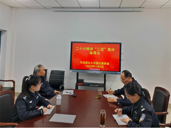 马克思主义中国化教研室在集体备课会中,强调要重点抓好党的二十大精神的专题理论学习,深入学习领会党的二十大精神,做到学深学透,将党的二十大精神武装头脑、增强理论自信,并及时推进“三进”工作。采取灵活高效的方式,认真研读党的二十大报告中的新观点、新论断、新思想,推动党的创新理论第一时间进学生头脑,教育感召学生进一步增强“四个意识”,坚定“四个自信”,做到“两个维护”。围绕《毛泽东思想和中国特色社会主义理论体系概论》《习近平新时代中国特色社会主义思想概论》等课程,分专题明确备课任务,在准确领会、充分理解的基础上,切实将党的二十大精神融入到各专题教学内容之中,提升“三进”工作实效。
